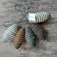 Lot of 6 green spiral nesters. Various, random fibre colours.
